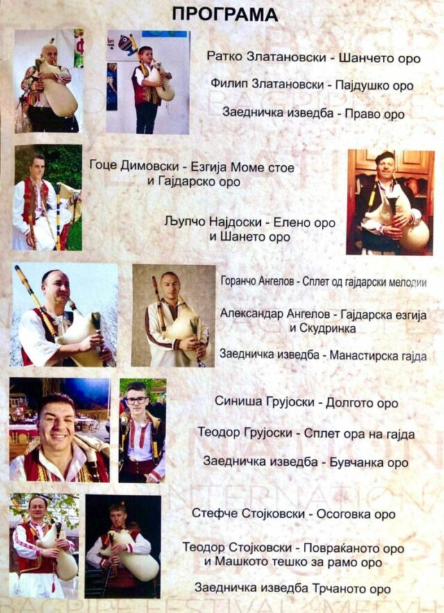 Публиката ќе има можност бесплатно да ужива во изведби на истакнати македонски гајдаџии и нивните потомци – жив доказ за континуитетот и силата на традицијата на изворната македонска музика.